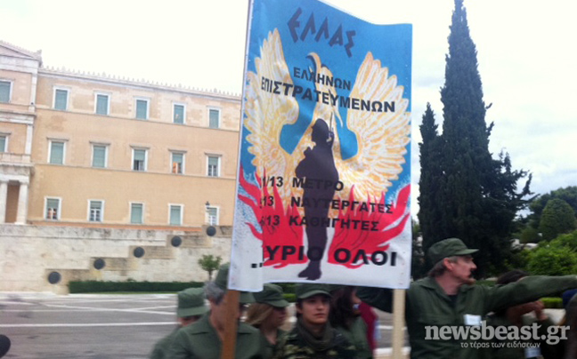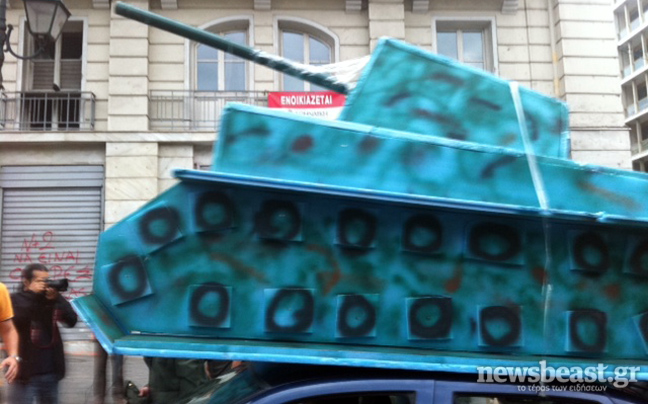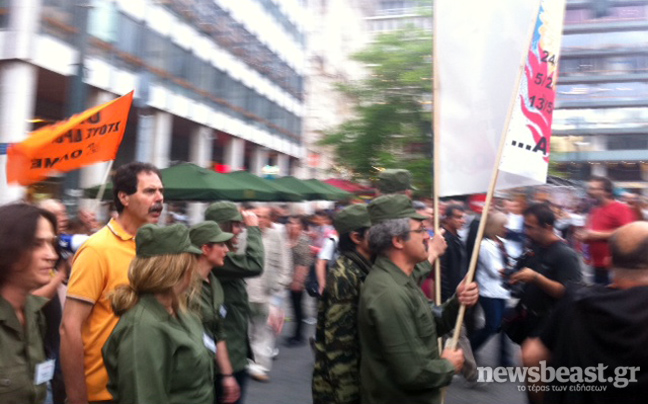 Σε ένδειξη διαμαρτυρίας για την απόφαση της κυβέρνησης να επιστρατεύσει τους καθηγητές πολλοί καθηγητές ντύθηκαν συμβολικά στα χακί, ενώ άλλοι έφτιαξαν ένα άρμα-τανκ και το μετέφεραν στους κεντρικούς δρόμους της πόλης μαζί με την πορεία.