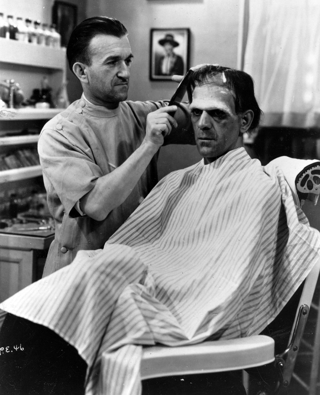 Ο μακιγιέρ Jack Pierce βάζει τις τελευταίες πινελιές στον βρετανό ηθοποιό Boris Karloff για τον ρόλο του Φρανκενστάιν που ενσάρκωσε στην πασίγνωστη ταινία του James Whale...