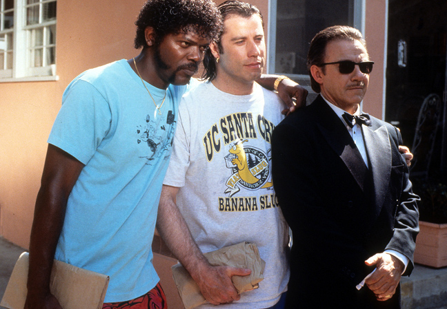 Η φοβερή και τρομερή τριάδα του φιλμ του Ταραντίνο, Σάμιουελ Τζάκσον, Τζον Τραβόλτα και Χάρβεϊ Καϊτέλ, ποζάρουν στον φωτογράφο...