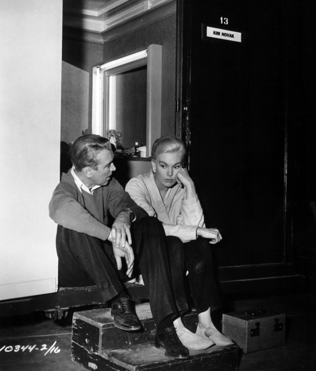 Ο Τζέιμς Στιούαρτ και η Κιμ Νόβακ ξεκουράζονται από τα απαιτητικά γυρίσματα της ταινίας του μετρ του σασπένς Άλφρεντ Χίτσκοκ...