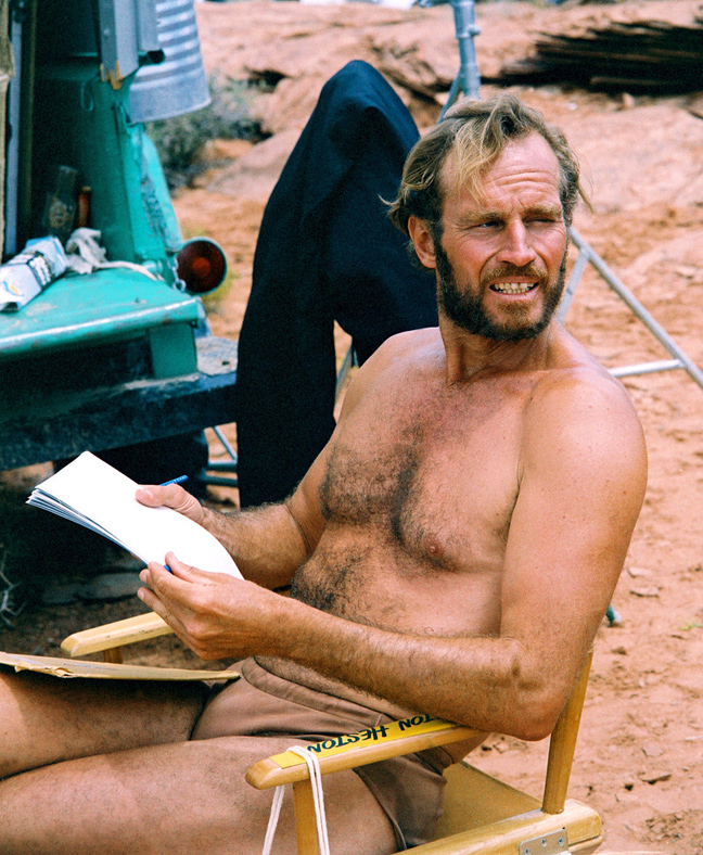 Ο Τσάρλτον Ίστον κάνει ένα διάλειμμα στον ήλιο περιμένοντας να ξαναρχίσει το γύρισμα...