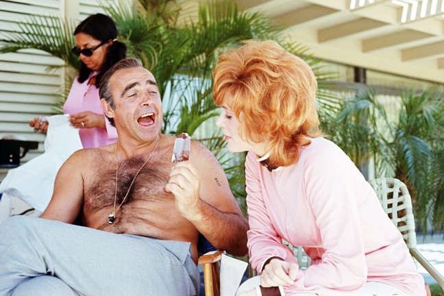 Ο Σον Κόνερι και η Jill St John αστειεύονται κατά τη διάρκεια των καλοκαιρινών γυρισμάτων της περιπέτειας του Τζέιμς Μποντ...