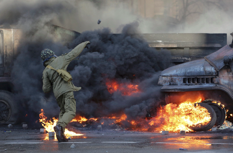 βίαιες συγκρούσεις που ξέσπασαν στο Κίεβο μεταξύ αντικυβερνητικών