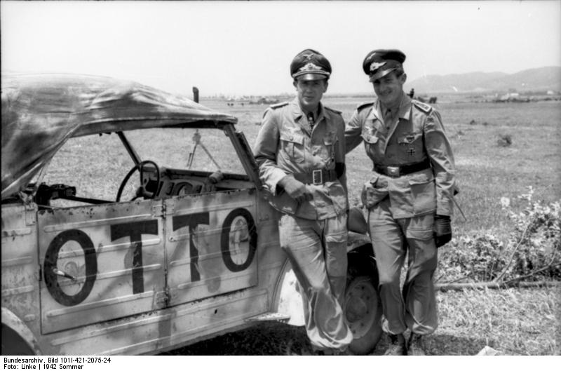 Marseille driving his Kubelwagen with Werner Schroer in the back