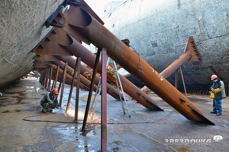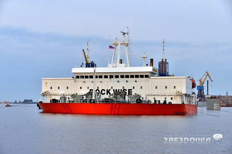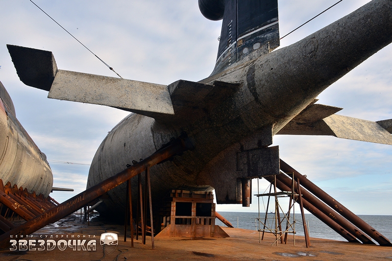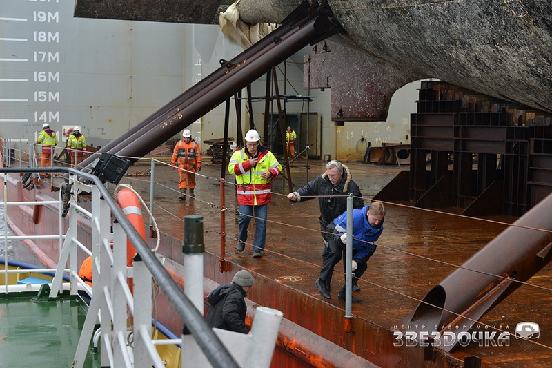 Here you see the ship when it has filled the ballast tanks and sinks deeper into the water