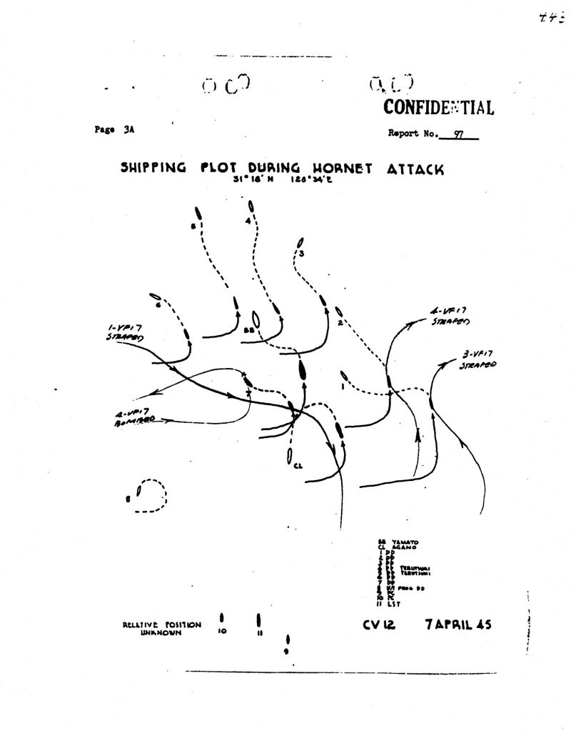 Scuttlebutt ran rampant during the morning hours of April 7, as the men of Hornet, Bennington, Belleau Wood and San Jacinto went about their business. But one rumor kept surfacing… Hornet and the rest of Task Force 58.1 was closest to whatever “it” was that was out there! Some were guessing that Japan had assembled one last powerful force and in an all or nothing gamble were speeding out to destroy the fleet. Others had it that massive suicide attacks were about to rain down upon them making the previous days’ attacks look like child’s play. In fact both rumors held truth. Yamato indeed had been dispatched along with one light cruiser, Yahagi, and 8 destroyers. But now, because of critical oil shortages, the ships carried only enough fuel for a one-way trip to Okinawa. There she was to beach herself if need be and fight to the last man while blasting away at any and all enemy targets. The Japanese were desperate. This last, thin hope of re-enforcing Lt. Gen. Ushijima’s beleaguered troops on Okinawa would be a do or die effort and few of the Japanese sailors expected to survive. This last ditch sortie of Japans once proud and seemingly invincible navy was code named “Operation Ten-Go” and most, including its commander Vice Adm. Ito on Yamato had written final letters home.