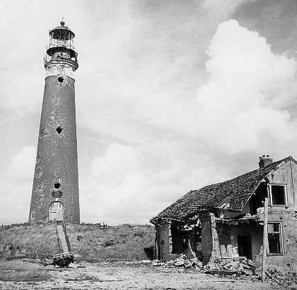 Damaged lighthouse on TexelTexel was turned into a scene of carnage that spared no one, including civilian Dutch inhabitants. Resistance forces and ordinary citizens who sheltered and helped the Georgians were executed, and the villages of Den Burg and Eierland saw serious damage to homes and buildings as the Germans exacted their revenge. ‘Texel is under a reign of terror,’ wrote one Texeler.