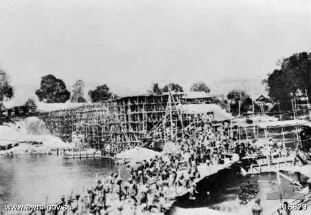 1943. Allied prisoners of war (POWs) engaged in bridge building at