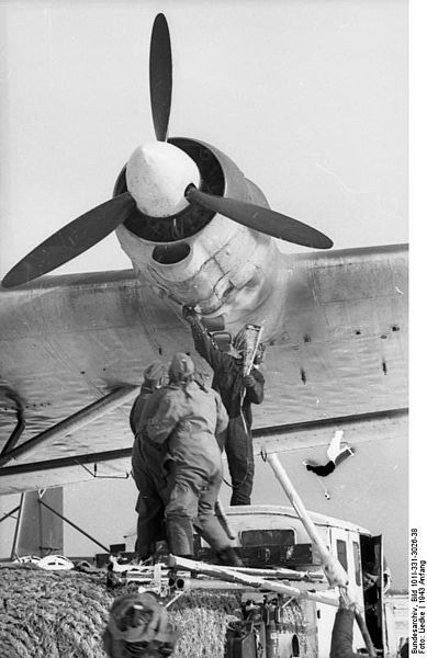 In front of the Giant is a Focke-Wulf Fw 58 “Weihe”, on the right a Focke-Wulf Fw 190.