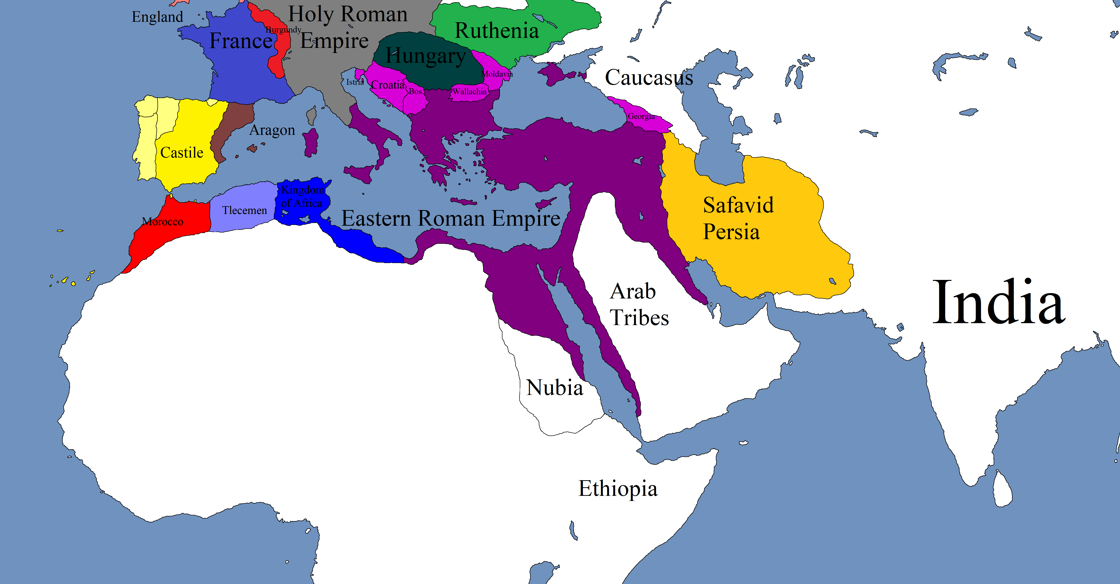 Hungary, after undergoing a rapid decline in the latter half of the 15th century, undergoes a nearly revolutionary change that brings the state back to greatness. They expand their borders, specifically towards Byzantium, who had just wrapped up exhausting wars with the Arabs. The Keroularid Dynasty is nearly overthrown in a brief civil war.