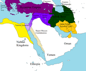 In 1134, the Byzantine Emperor Alexios II Diogenes launched a full-scale invasion of the Fatimid Caliphate with the goal to seize the Arabian portion of the empire, specifically Jerusalem, the Sinai Peninsula, and Mecca and other holy cities in Islam. The Fatimid Empire was already in rapid decline due to the weakening of the Fatimid political system as a result of drought and the army, and the Iqta system unintentionally granting more autonomy towards the fringes of the Empire. The Byzantine invasion finally broke the pressure, and in the ensuing chaos, the Red Coast and the Fatimids native homeland, of Algeria, split off, forming the Hejazi-Meccan Confederation and the Sultanate of Algeria. Tunisia later split off as well, forming a mercantile kingdom that came to a critical part of the Mediterranean trade. The latter two would later be reincorporated into the Fatimid domain, but that actions would lead to its collapse.